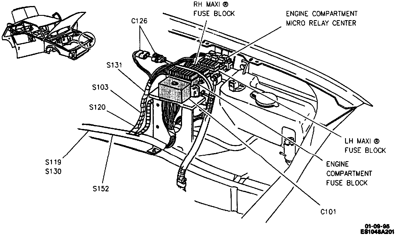 LH Front Of Engine Compartment (4.9 L Shown, Northstar Similar):