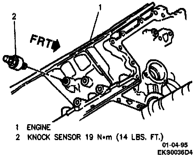 1. Sensor to engine. Tighten Knock Sensor to 19 Nm (14 lb. ft.).