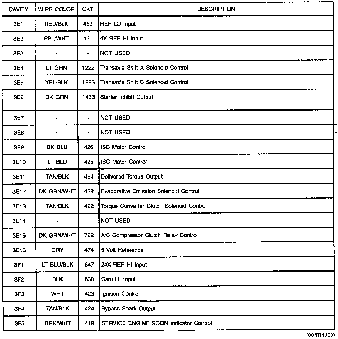 Harness Connector Faces: PCM -3E/3F:
