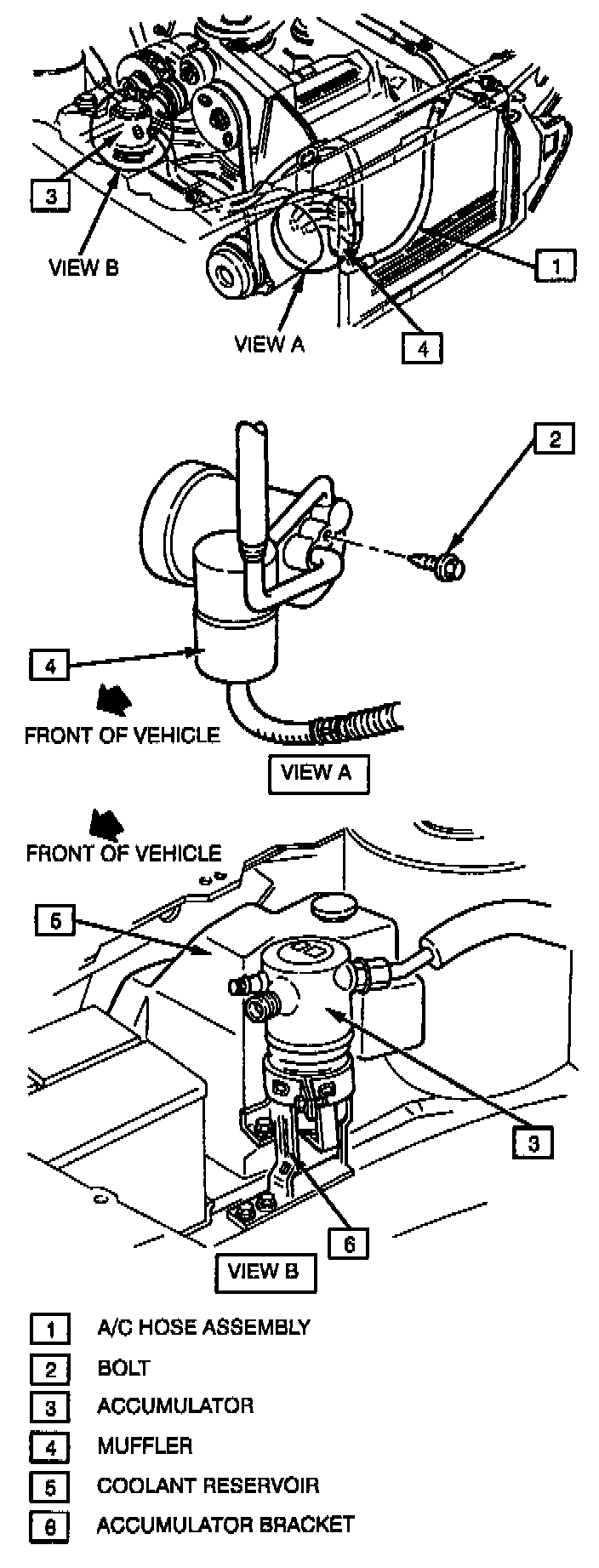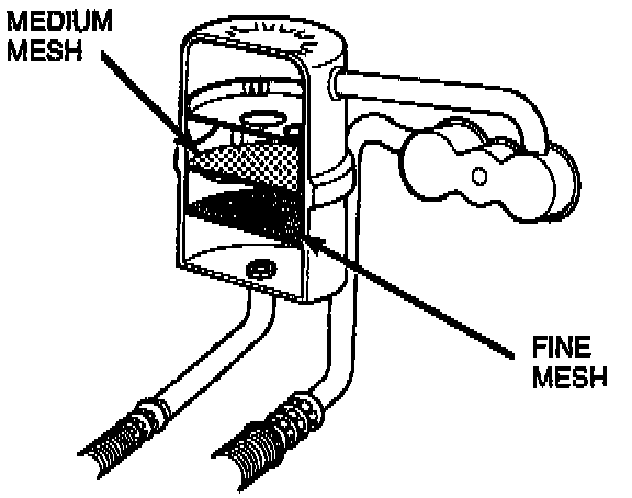 NOTE: The compressor hose assembly muffler is equipped with wire mesh screens to prevent debris from a compressor failure from entering the refrigerant system. The flushing procedure used on models of previous years is not necessary on vehicles equipped with the filter muffler assembly.