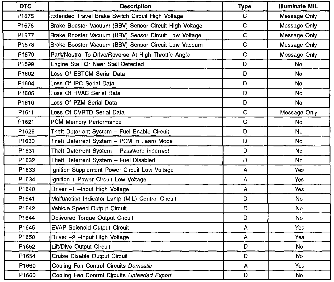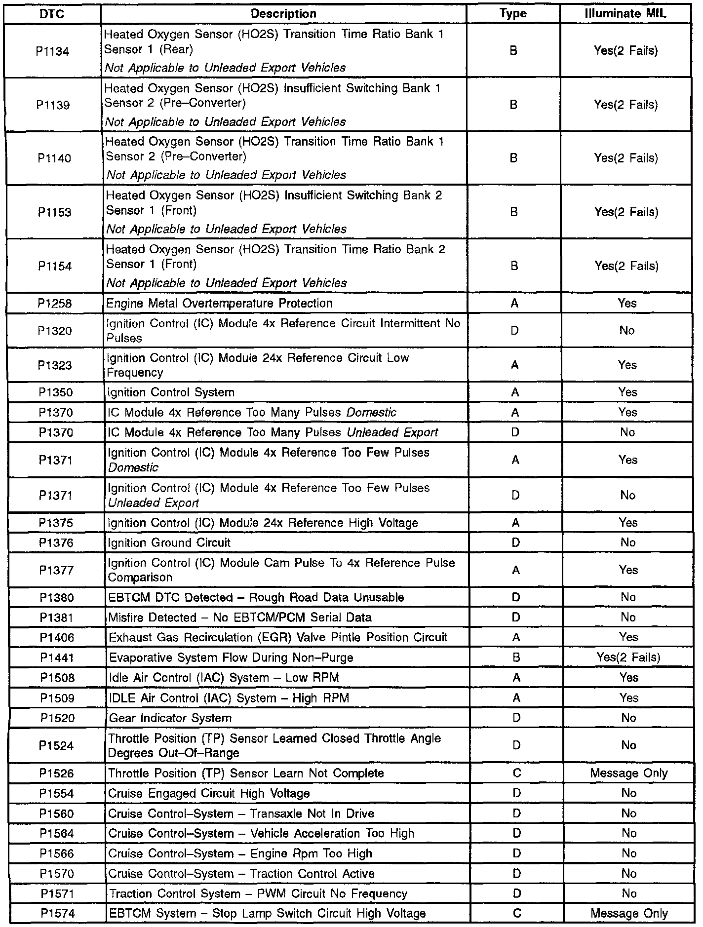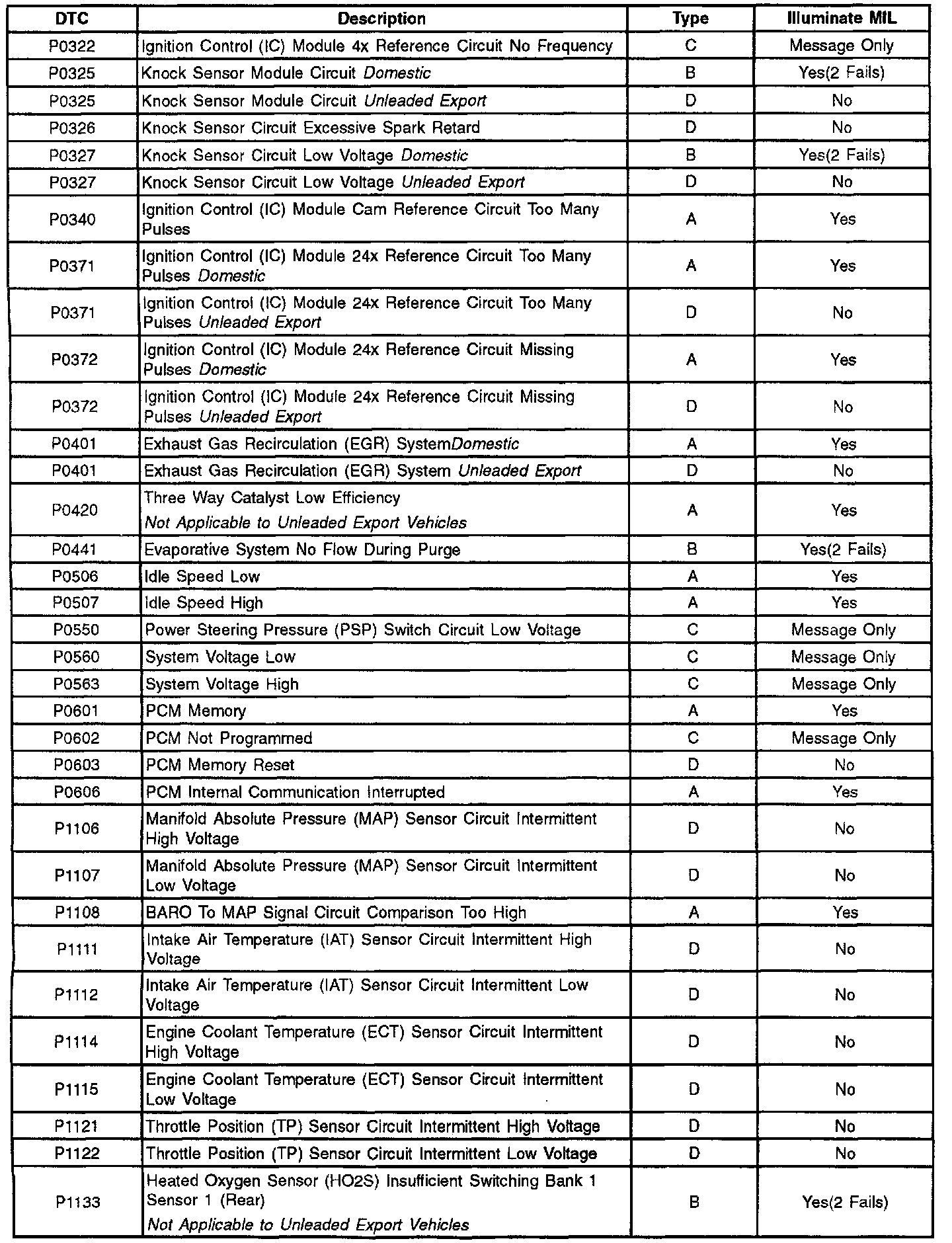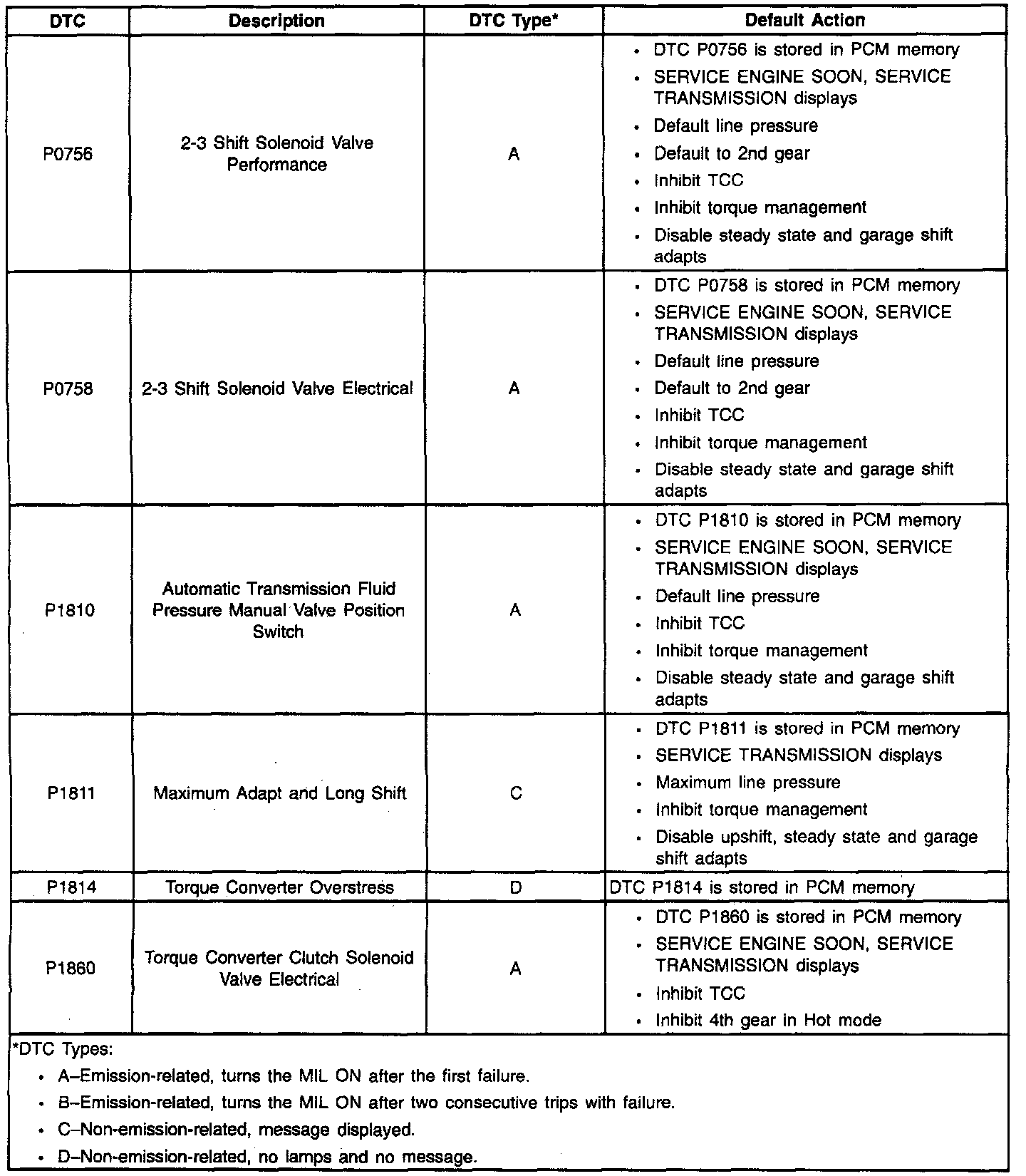 ADDITIONAL DIAGNOSTIC TROUBLE CODES (DTC'S)These are the only powertrain diagnostic trouble codes used for this vehicle. Additional codes obtained with an aftermarket scan tool are not valid codes. Contact the scan tool manufacture for additional information.