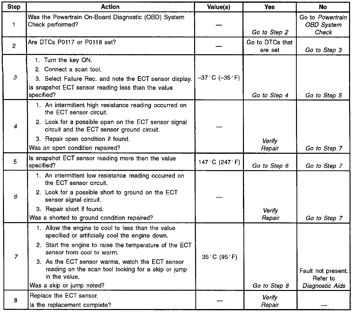 7. Checking the ECT sensor's ability to read a full range of temperatures.