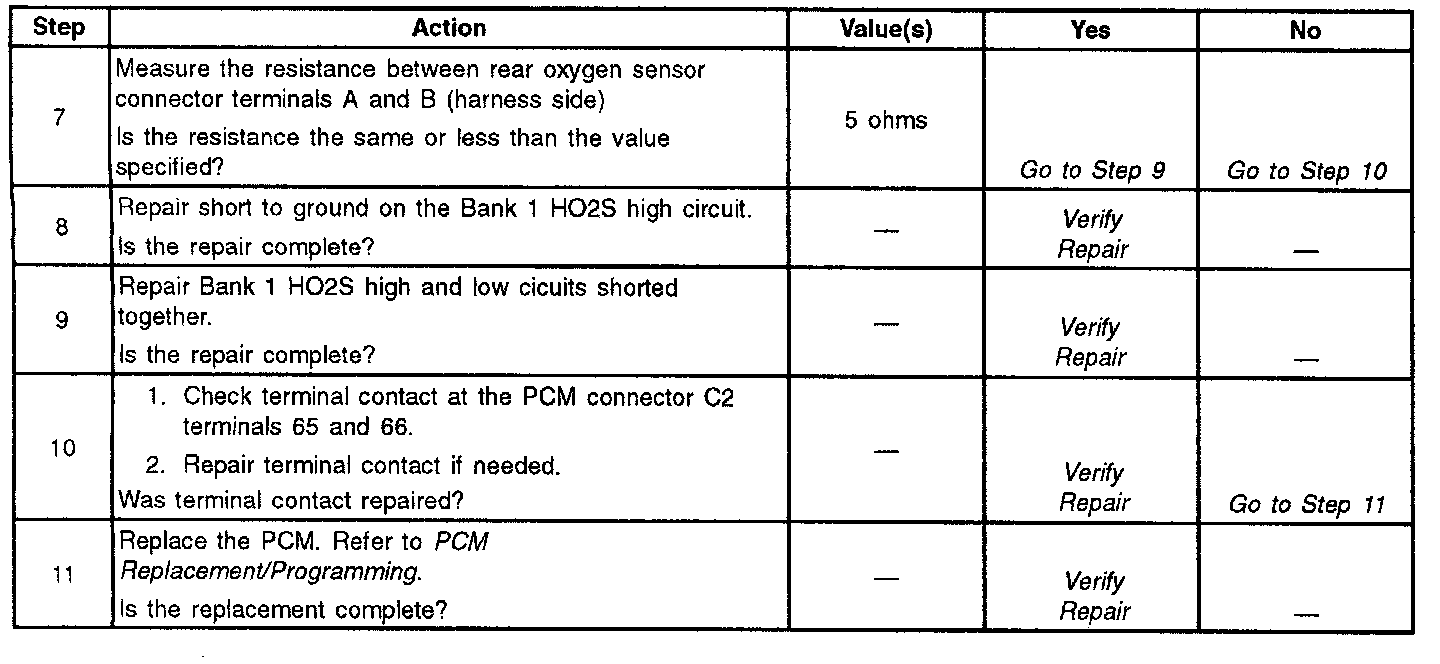 HO2S Circuit Low Voltage Bank1 Sensor1 (Rear) (continued):