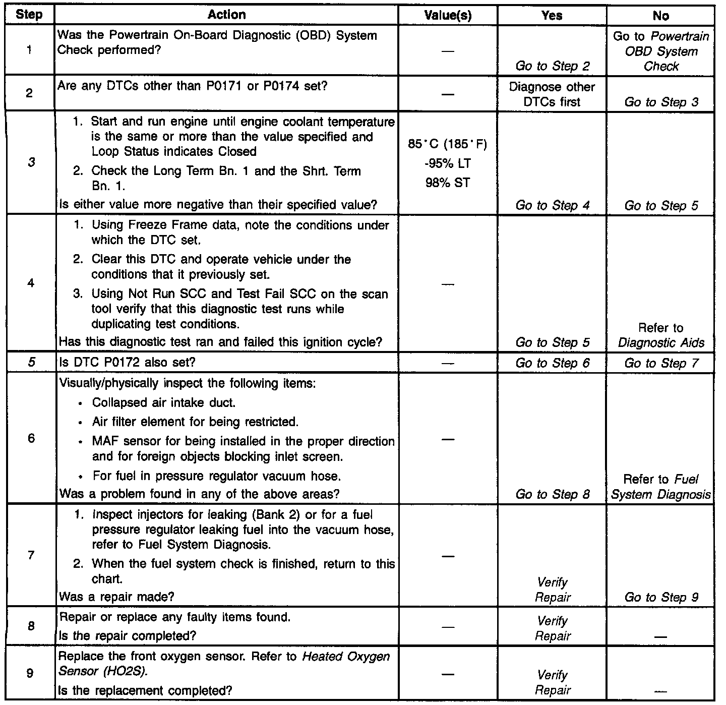 5. If DTC P0172 is also set indicates both banks are operating rich, Inspect items that would cause both banks to operate rich.