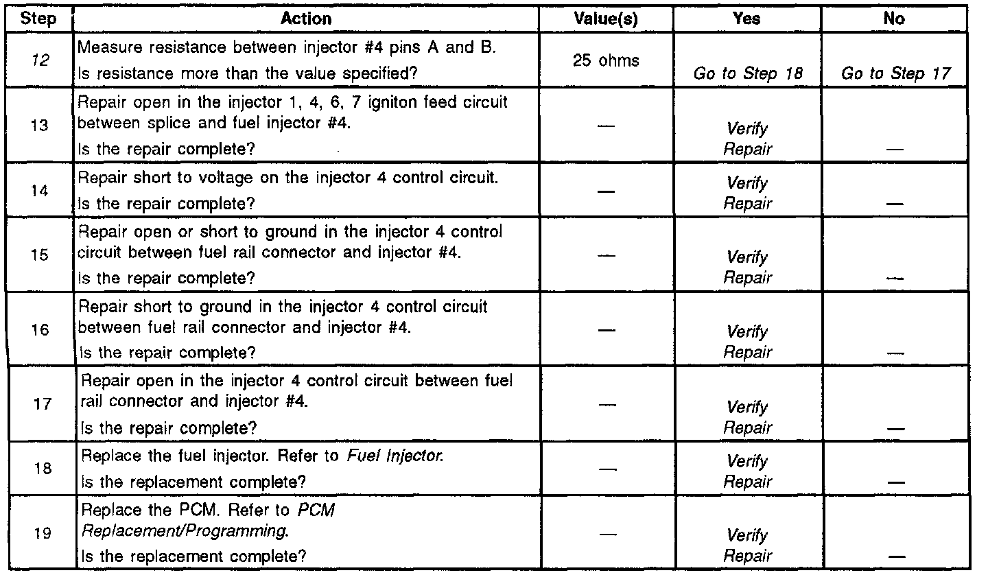 11. Checking for a short to ground in the injector 4 control circuit between fuel rail connector and injector # 4.