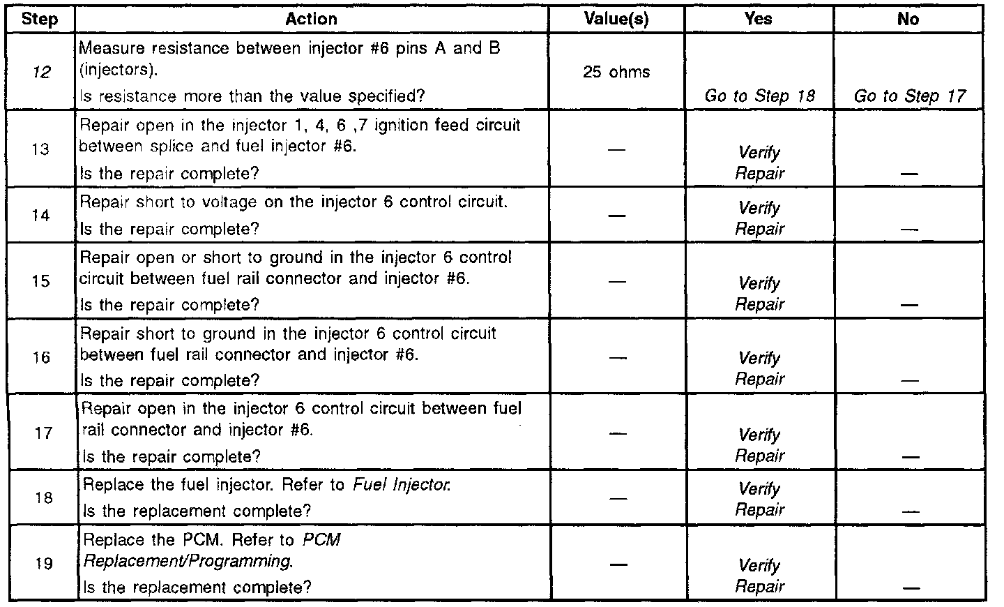 11. Checking for a short to ground in the injector 6 control circuit between fuel rail connector and injector #6.