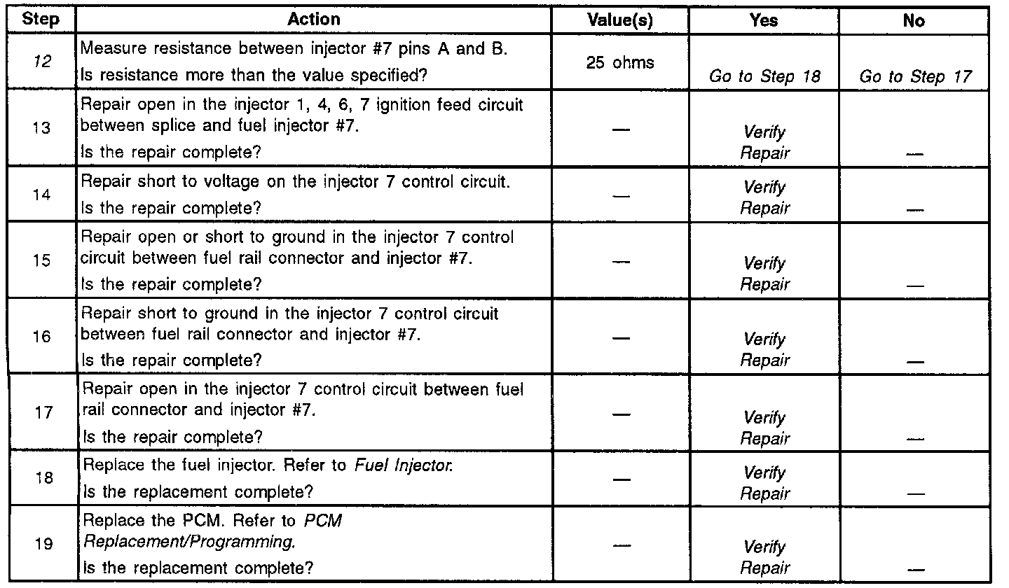 10. Checking for an open or short to ground in the injector # 7 control circuit between PCM and fuel rail connector.
