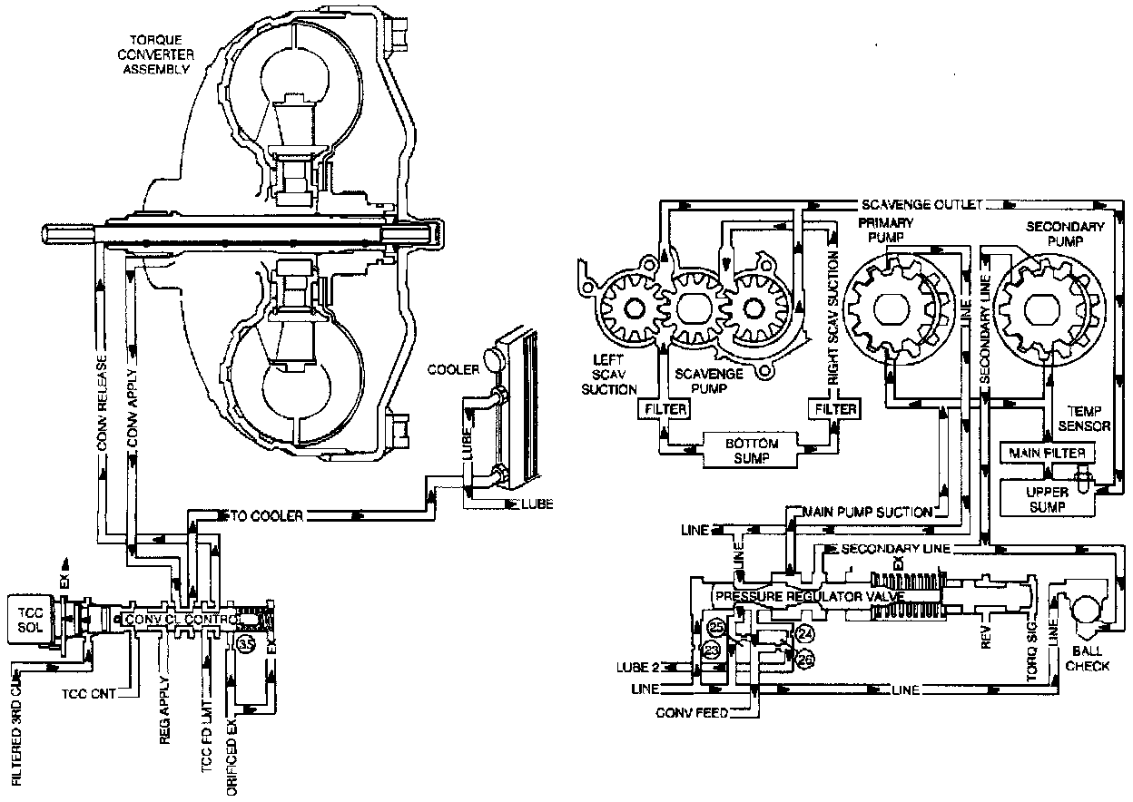 ^ Low Line Pressure: Inspect cooler lines for any crimps or restrictions. Refer to Line Pressure Check Procedure.