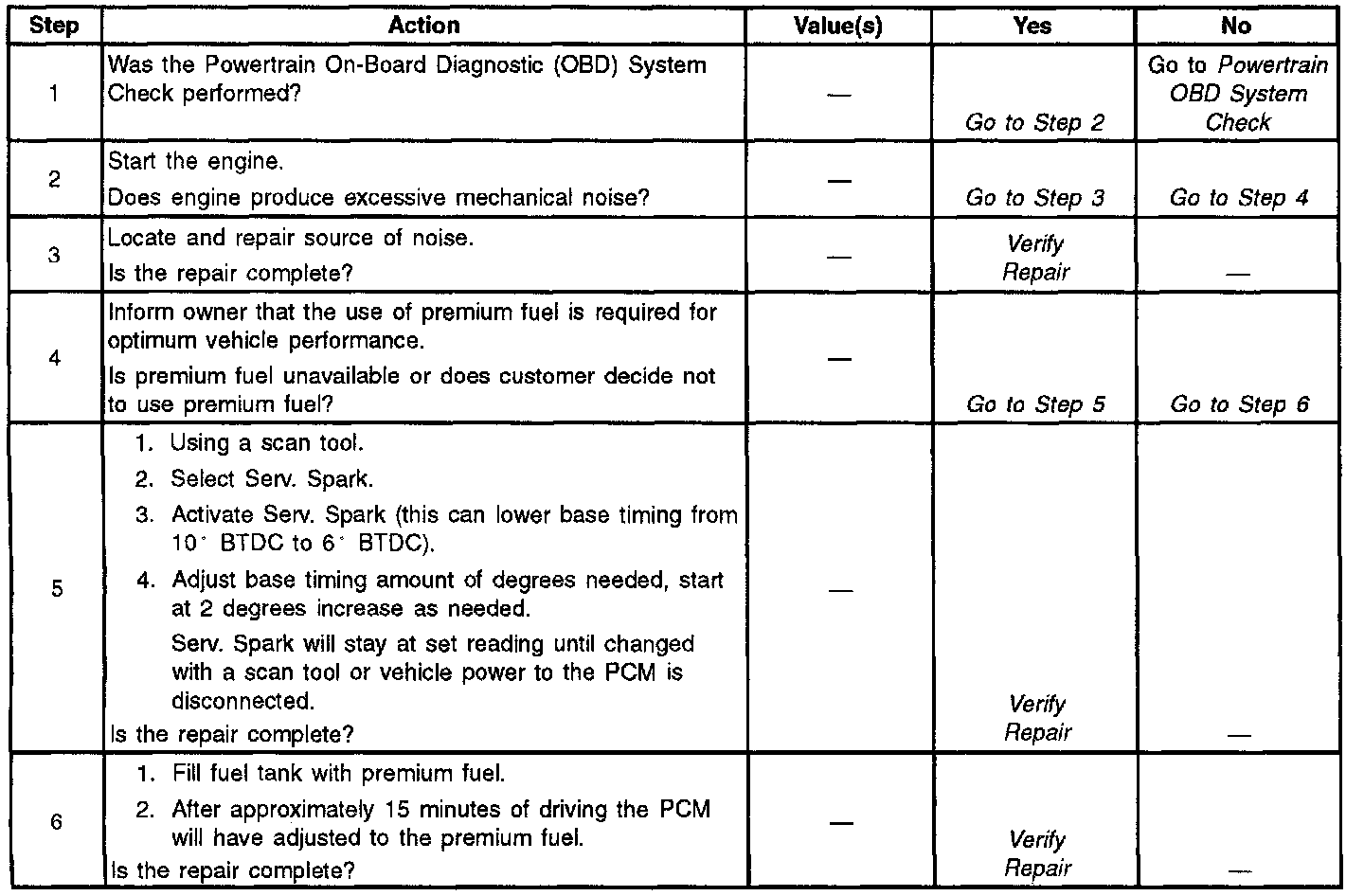Knock Sensor CKT Excessive Spark Retard: