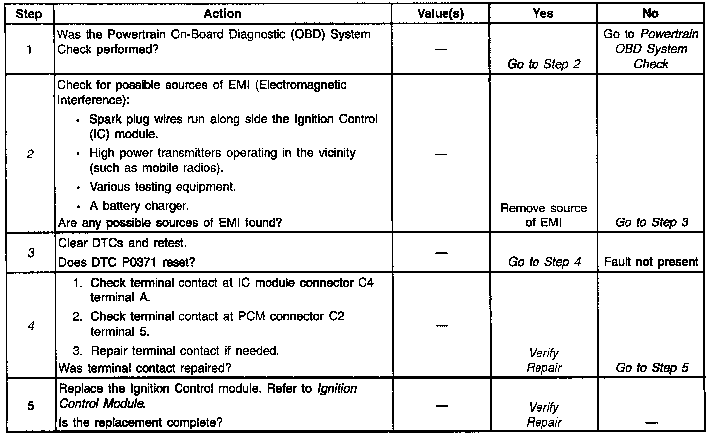 4. Checking for poor terminal contact at the 10 module or PCM that may cause the DTC to set.