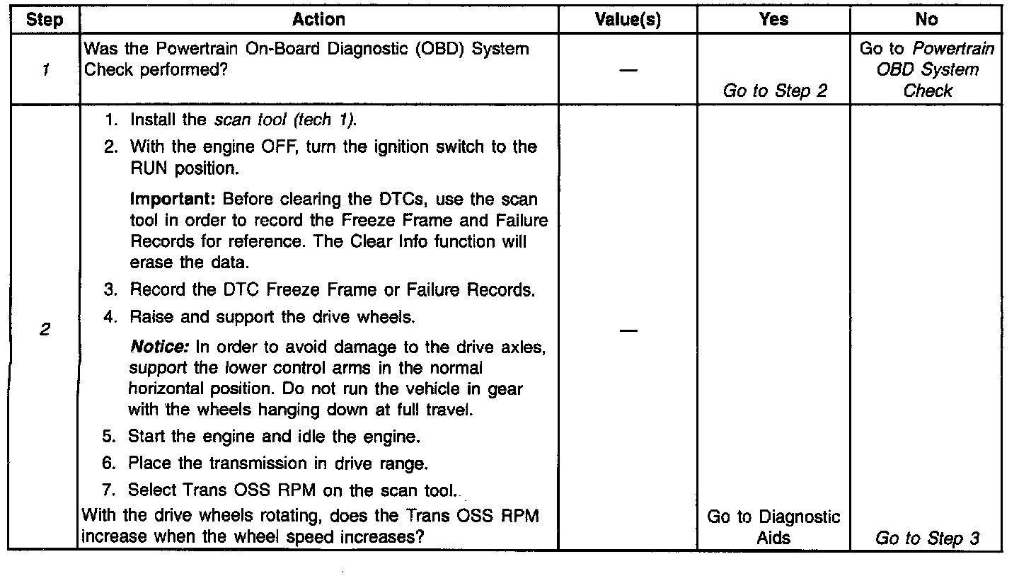 2. This Step checks for DTCs. This Step checks for a vehicle speed signal. It is important to record freeze frame or failure records information before proceeding further.