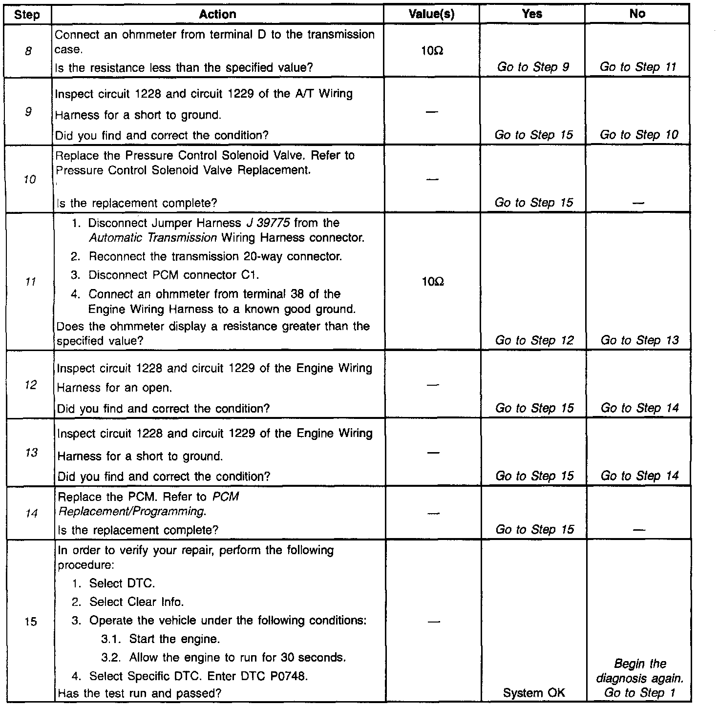 9. This Step inspects circuit 1228 and circuit 1229 in the transmission for a short to ground. You must replace the transmission harness, if you find a short to ground in the harness.