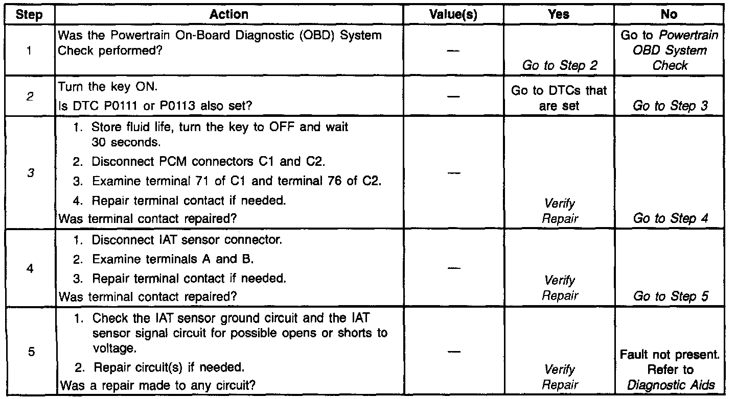 2. If DTC P0111 is also set, diagnose it first because it may help to pinpoint a faulty IAT sensor.
