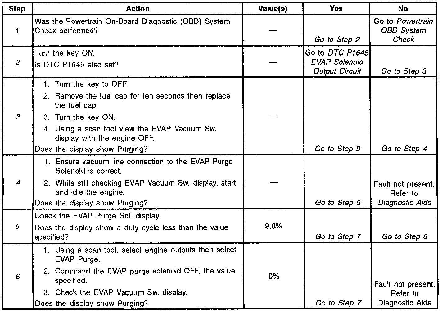 2. If the EVAP purge solenoid or wiring is open or shorted DTC P1645 should be set.