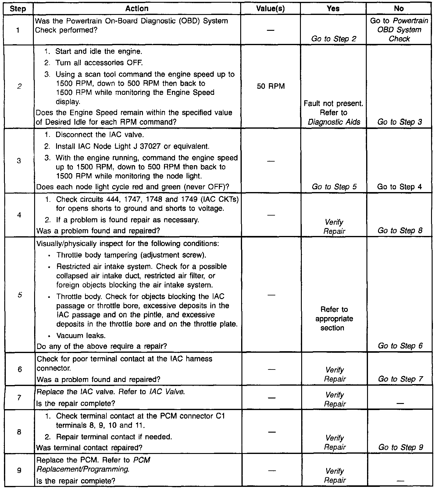 IAC System High RPM: