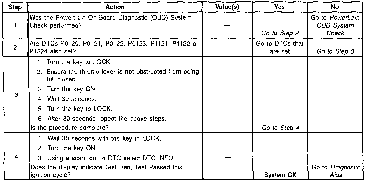 If DTC P1526 does not pass following the completion of the TP Sensor Learn Procedure, this may be due to incorrect or erratic signals from the TP Sensor.