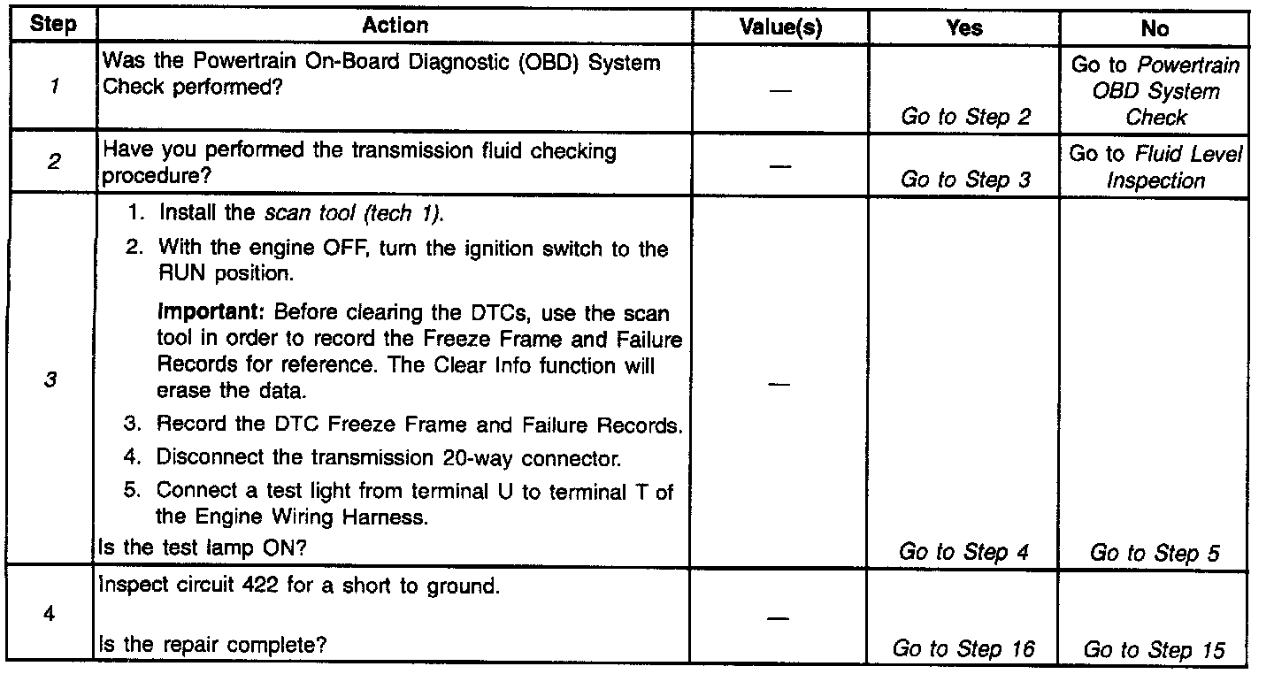 13. This Step inspects circuit 422 of the Automatic Transmission Wiring Harness. If you find a short to ground in the transmission harness, you must replace the harness.
