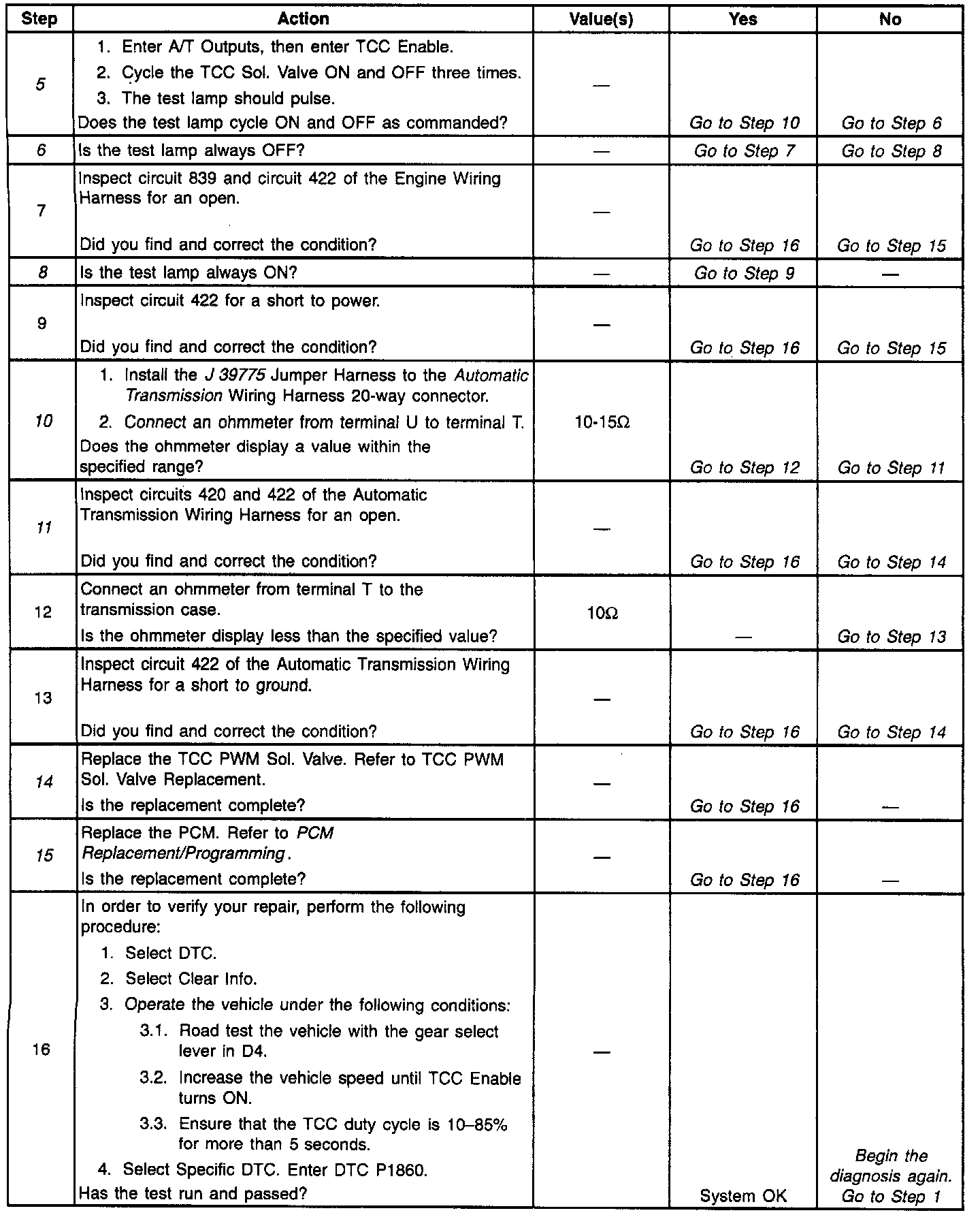10. This Step verifies that the TCC PWM Sol. Valve is within resistance specifications.
