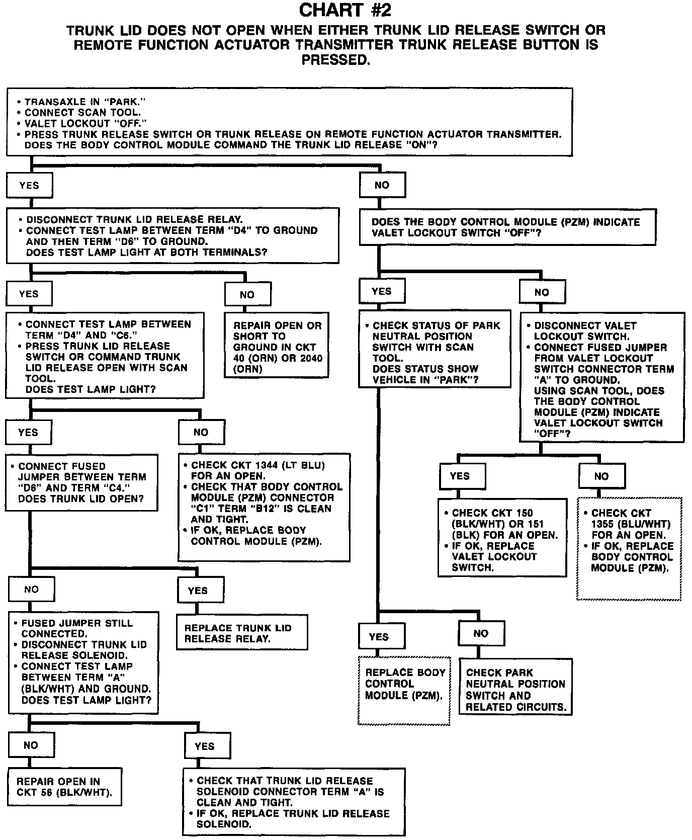 Chart #2 Trunk Lid Does Not Open When Either Trunk Lid Release Switch Is Pressed: