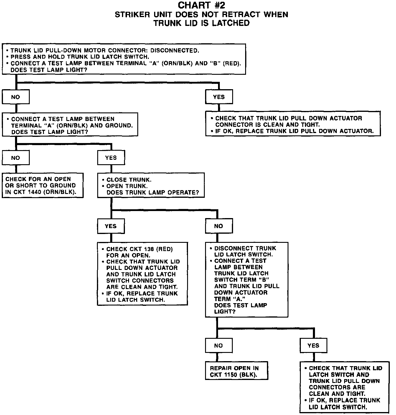 Chart #2 Striker Unit Does Not Retract When Trunk Lid Is Latched: