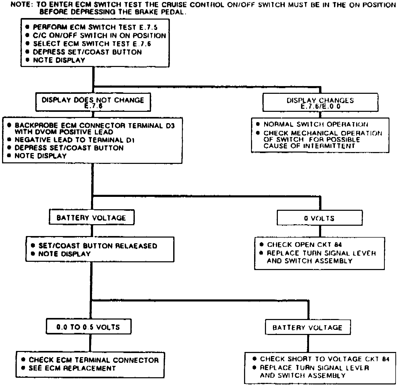 1. With diagnostic trouble code E.7.1 displayed, depress and release brake pedal again to test cruise control brake switch circuit.