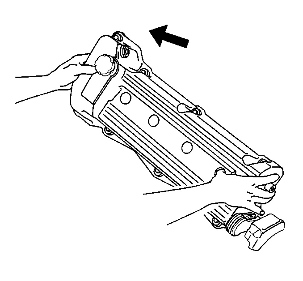 4. Work the cover into position by allowing the top edge of the cover to follow the left side edge of the intake manifold.