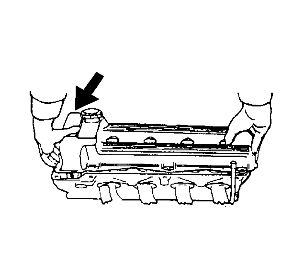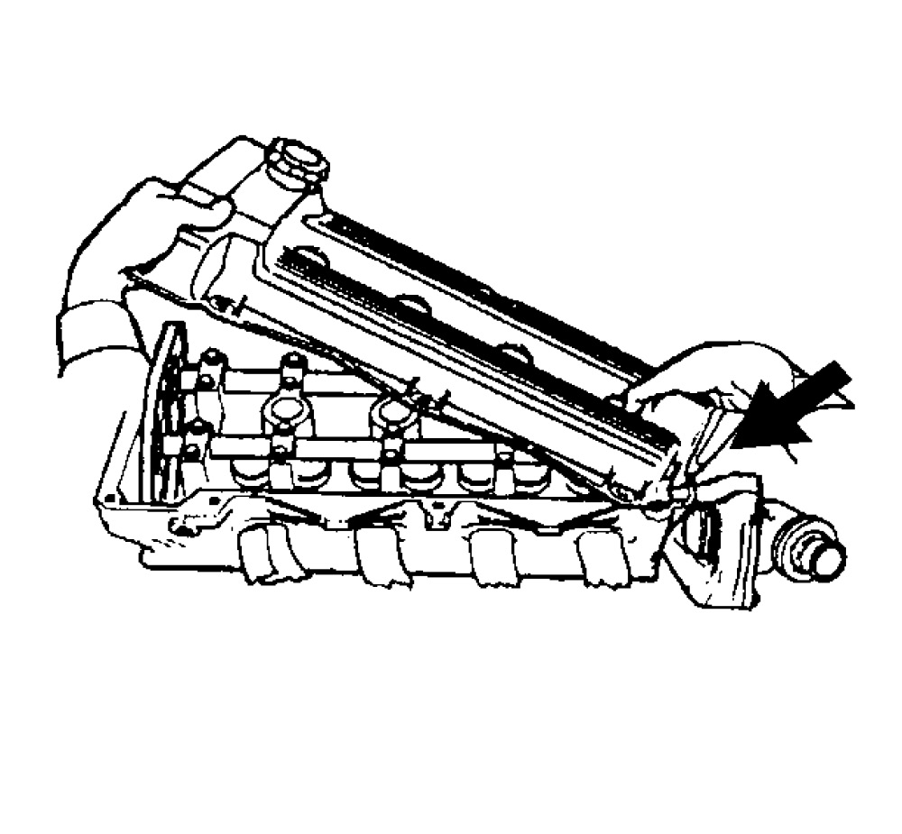 Important: Be careful to prevent the exposed section of the cam cover seal from being damaged by the edge of the cylinder head casting.