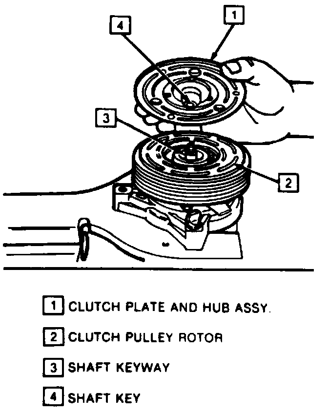 3. Align the shaft key with the shaft keyway and place the clutch plate and the hub assembly onto the compressor shaft.