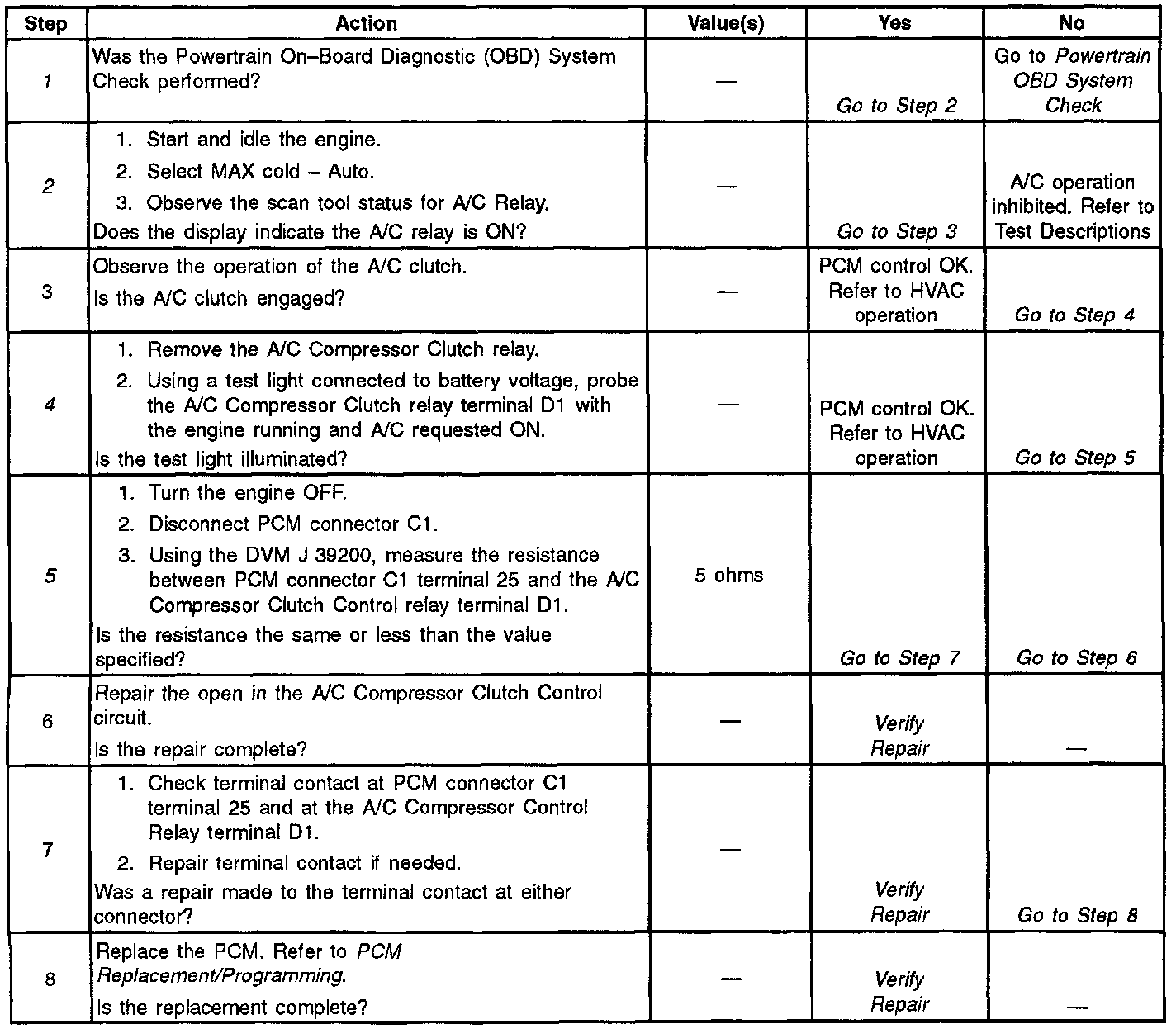 1. Since many DTCs disable A/C clutch operation, any DTCs must be repaired and cleared before using this table.