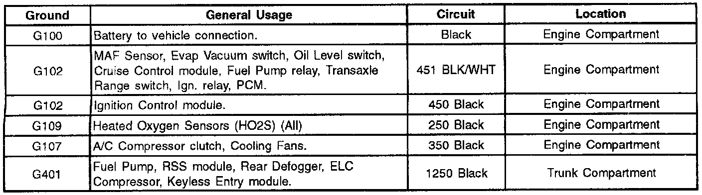 Check the grounds listed in the Powertrain Ground Check table for the following conditions: