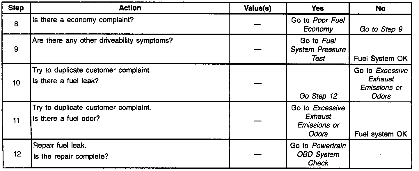 The Fuel System Check provides a quick analysis of the fuel system. This chart then identifies more detailed diagnosis required based on the symptoms present.