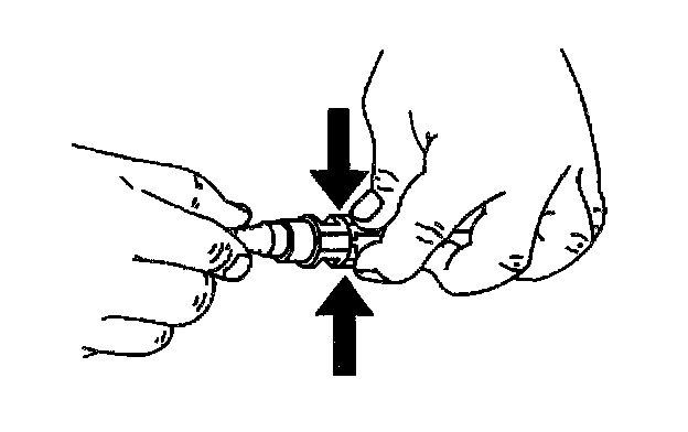 9. Squeeze the plastic tabs of male end connector.