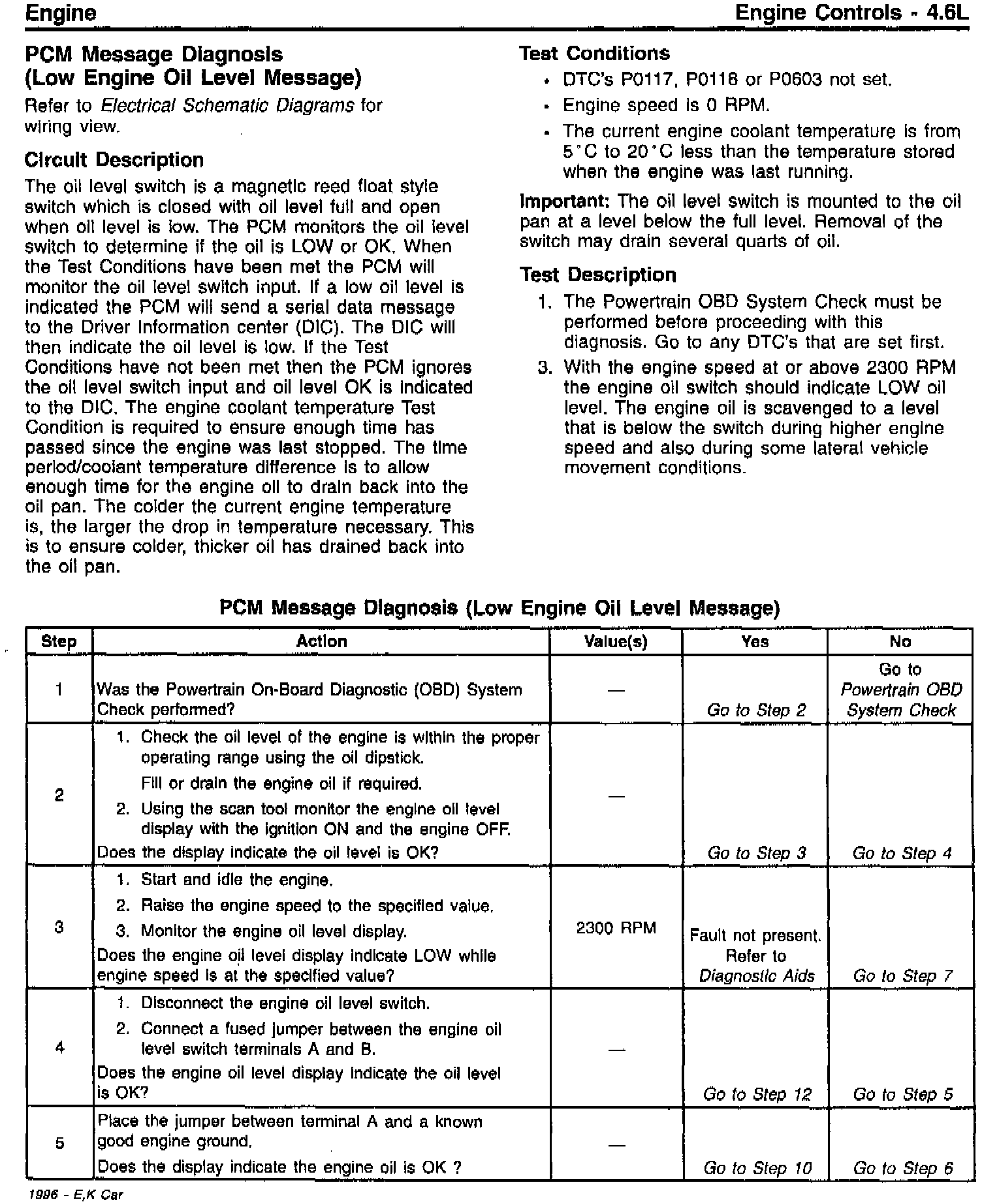 ^ PCM Message Diagnosis - Low Engine Oil Level Message