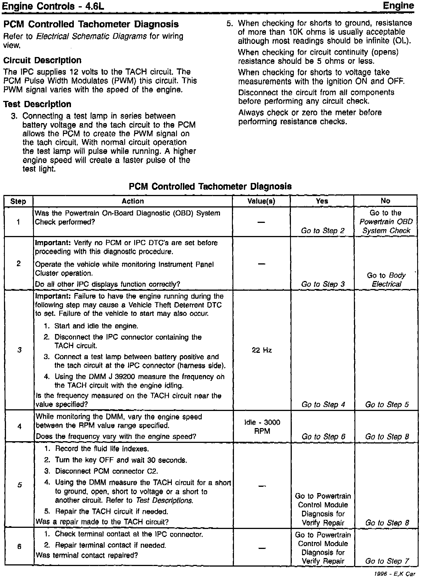 Section 6E - Engine Controls Revised PCM Message and Tachometer Diagnosis