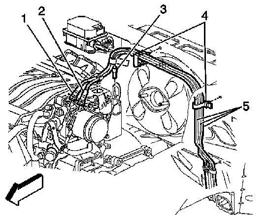 1. Disconnect the fuel lines (5) from the underhood retainers on the throttle body and body sheet metal (4).