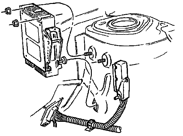 38. Position the ABS module to the left strut (shock) tower and install the two nuts.