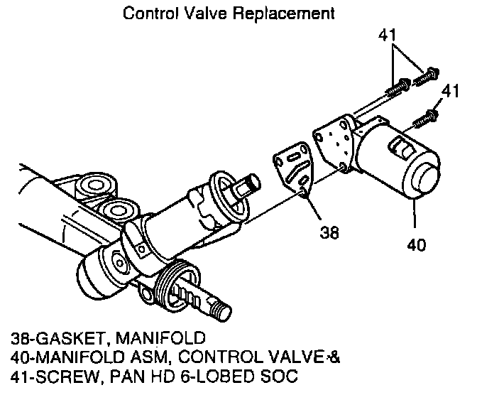 2. Control valve (40) and manifold gasket (38) from rack & pin ion gear assembly (30).