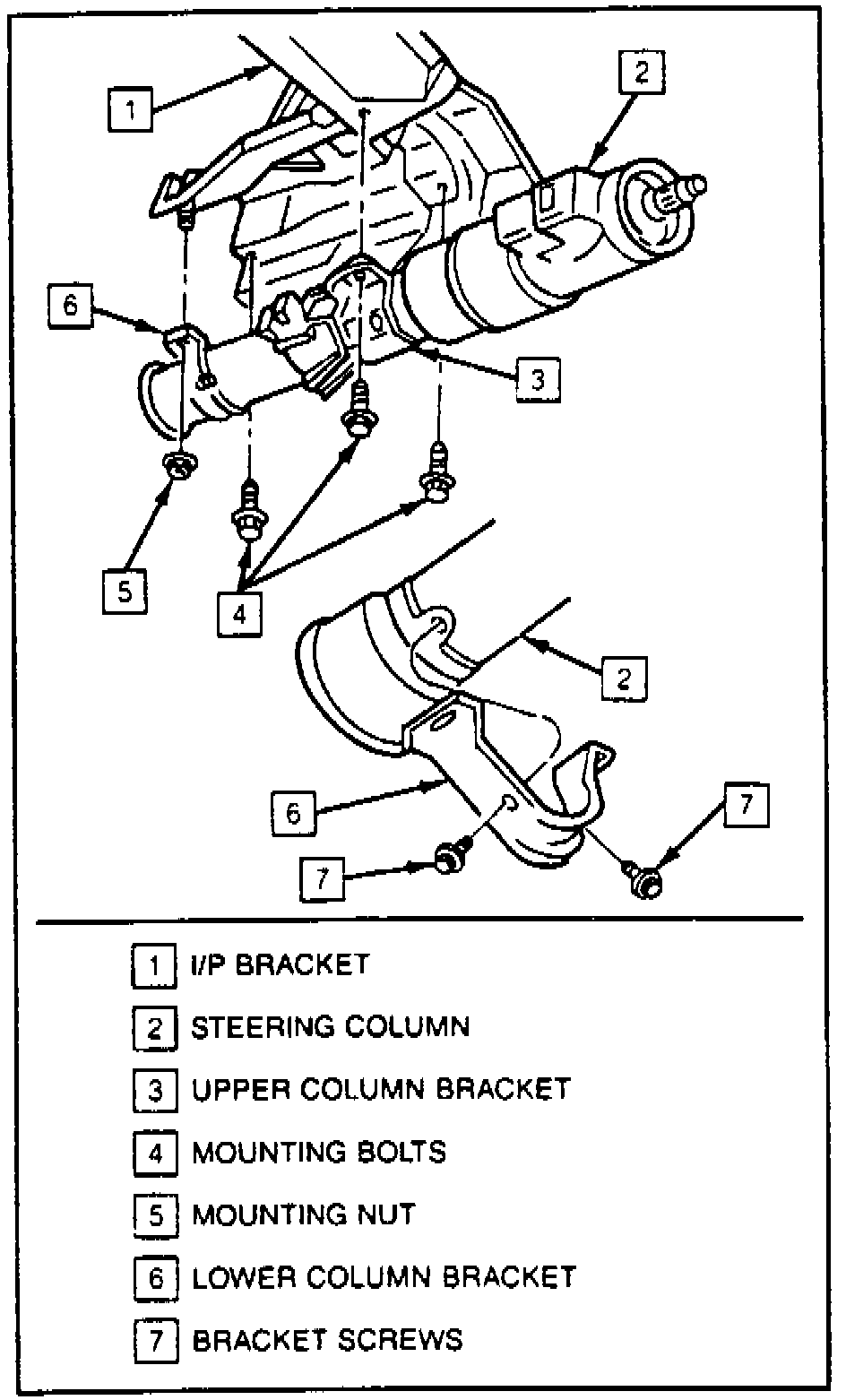 4. Torque upper and lower column support bolts to 20 lb ft, then the lower bracket to column screws to 12 lb ft