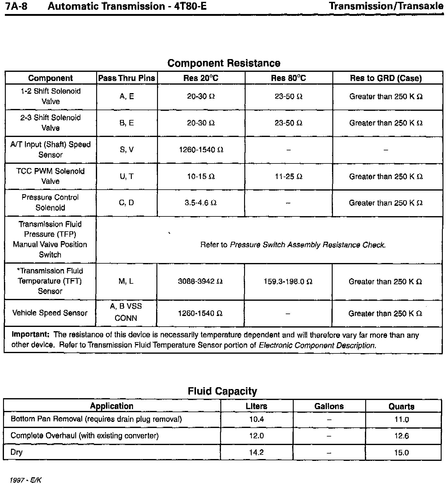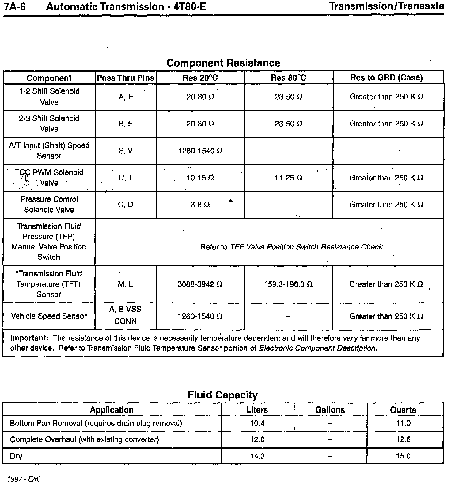 Included are the new updated pages of the 1996 and 1997 Service Manual Section 7A with a revised Component Resistance Chart.