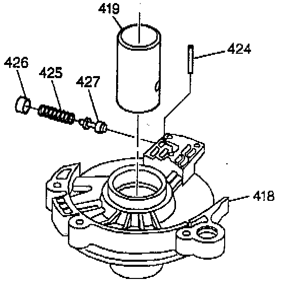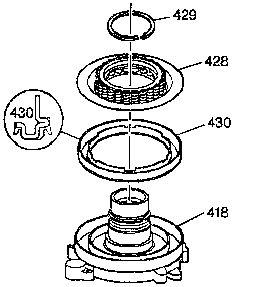 - The third clutch exhaust valve spring retaining pin (424) The cup plug (426)