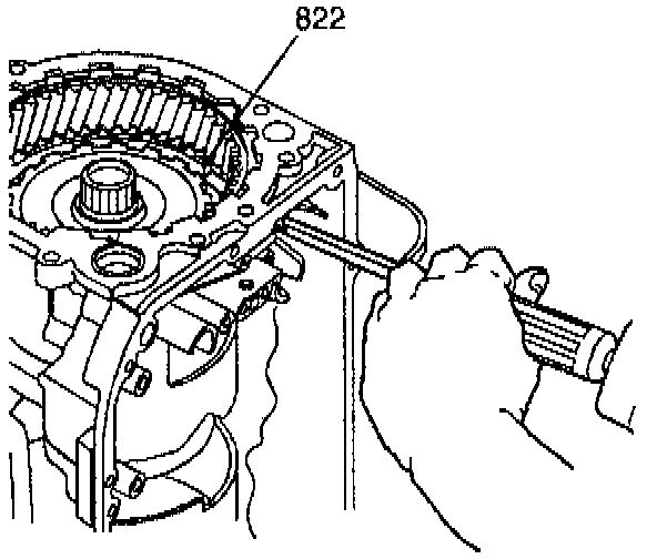 1. Rotate the forward and coast clutch support (822) counterclockwise against the spline. Do this by tapping on the support in a counterclockwise direction against the splines.