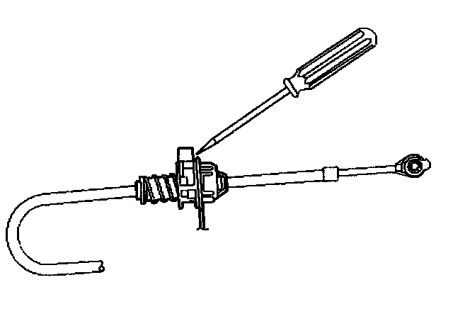 3. Pry on the shift cable terminal at the manual shaft lever pin with an appropriate tool. Prying or pulling up on any other part of the shift cable may result in damage to the shift cable.