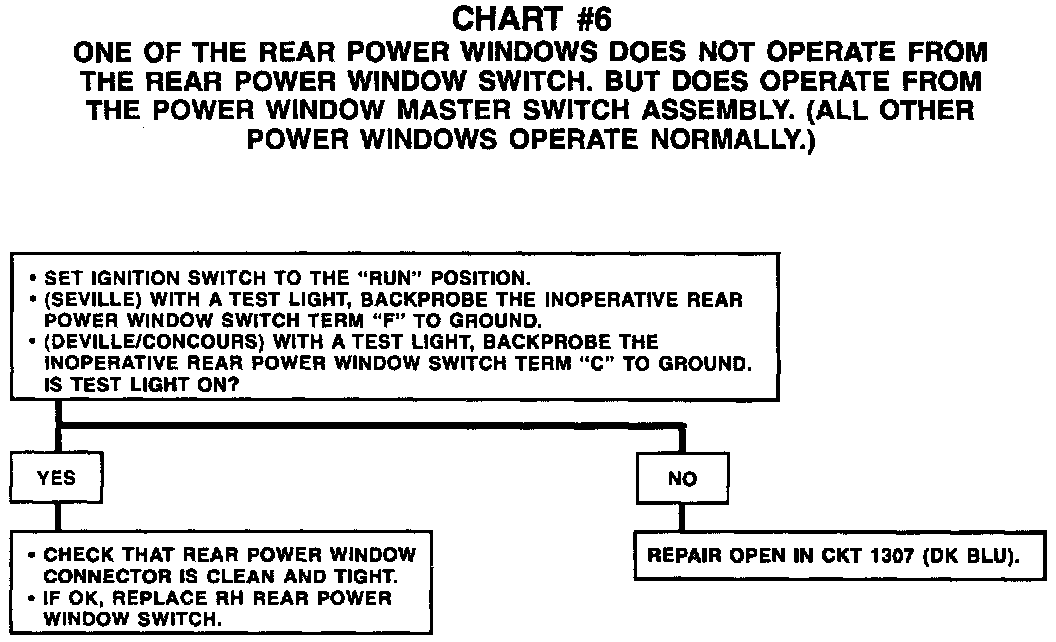 Chart #6 One Of The Rear Windows Does Not Operate From The Rear Power Window Switch: