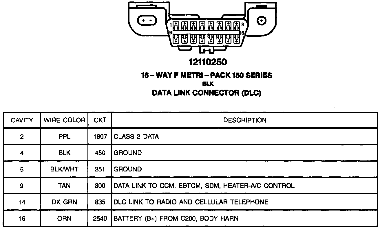 Data Link Connector (DLC): Pin Assignment: