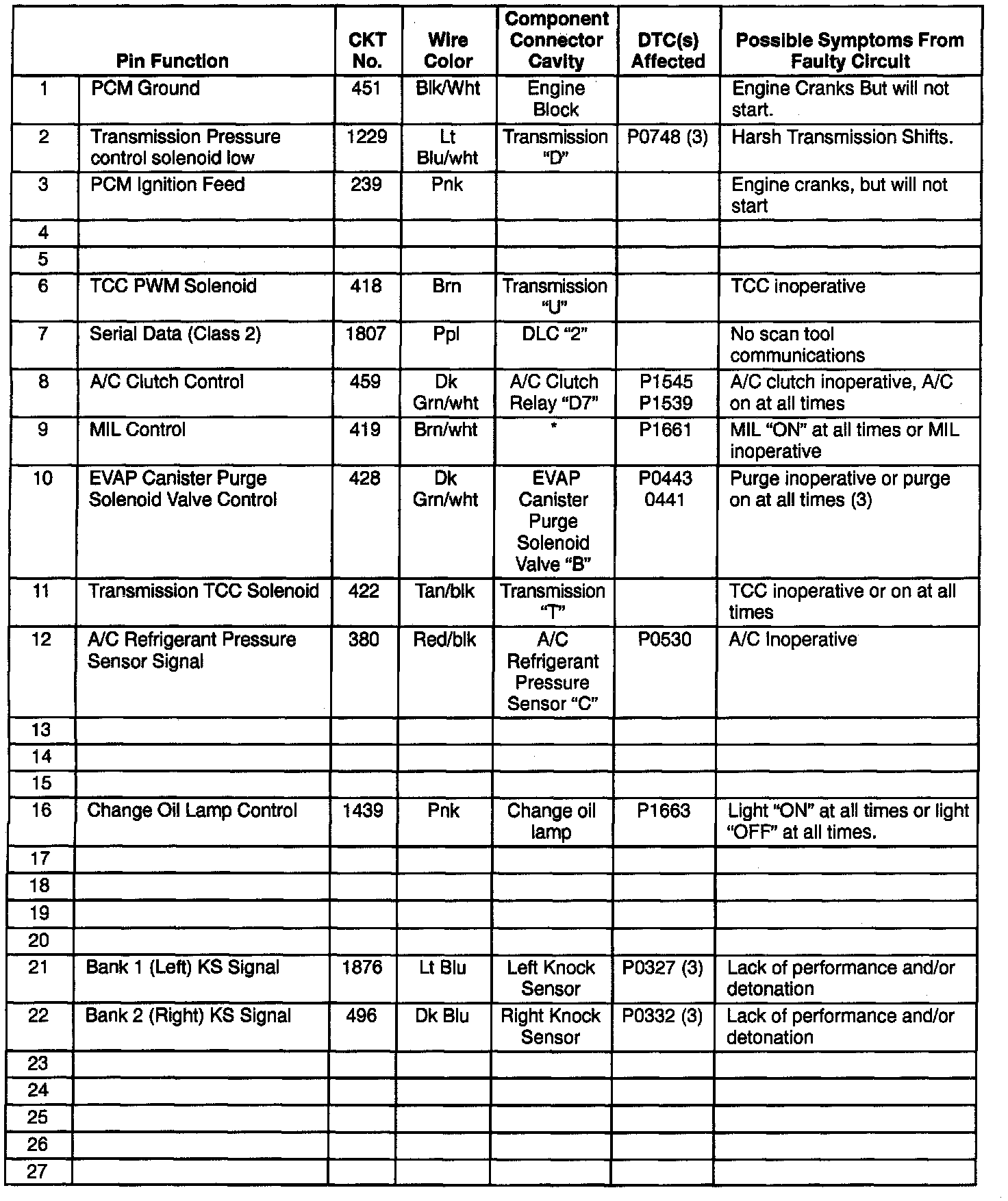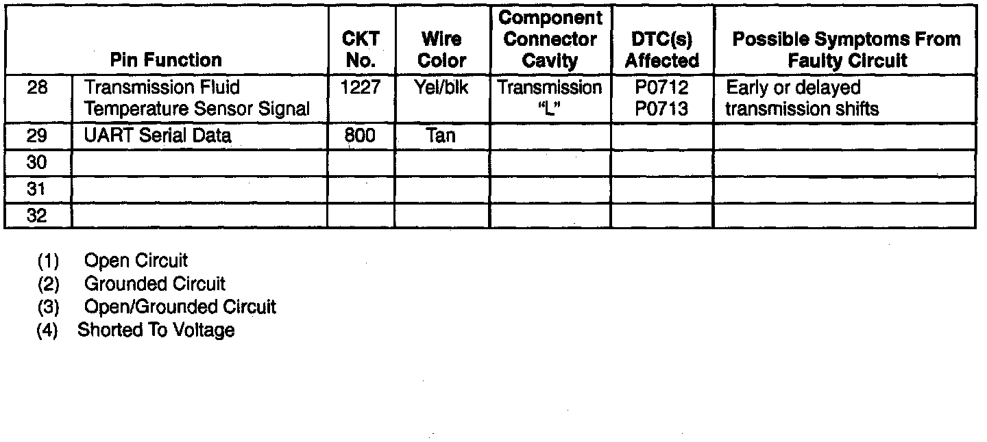 Connector "C4" Symptoms Table 32 Pin Connector (Blue) (2 Of 2):