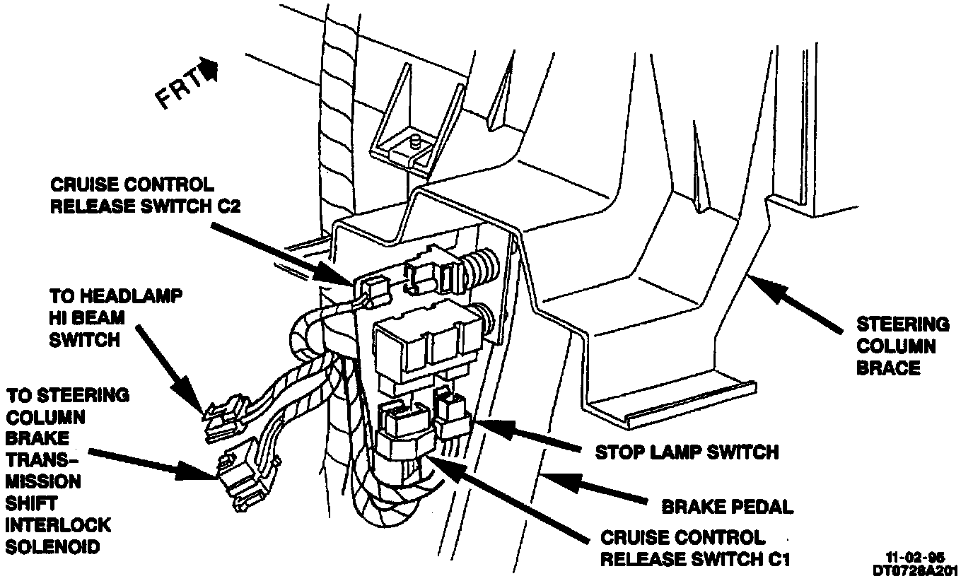 Below LH Side Of I/P, Right Of Steering Column, Brake Pedal: