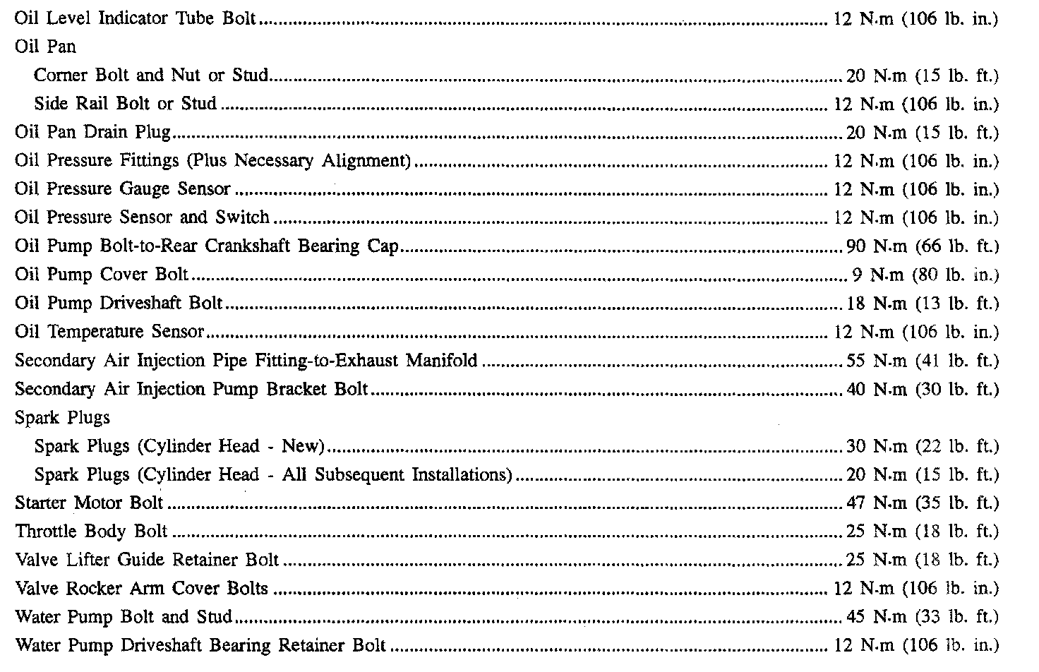 Fastener Tightening Specifications - Engine