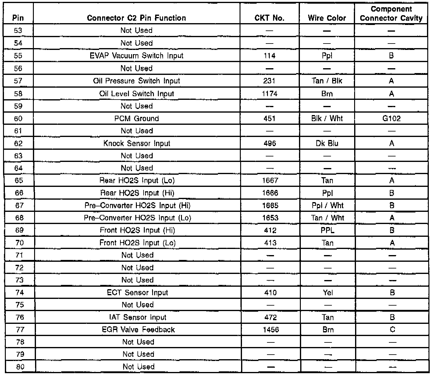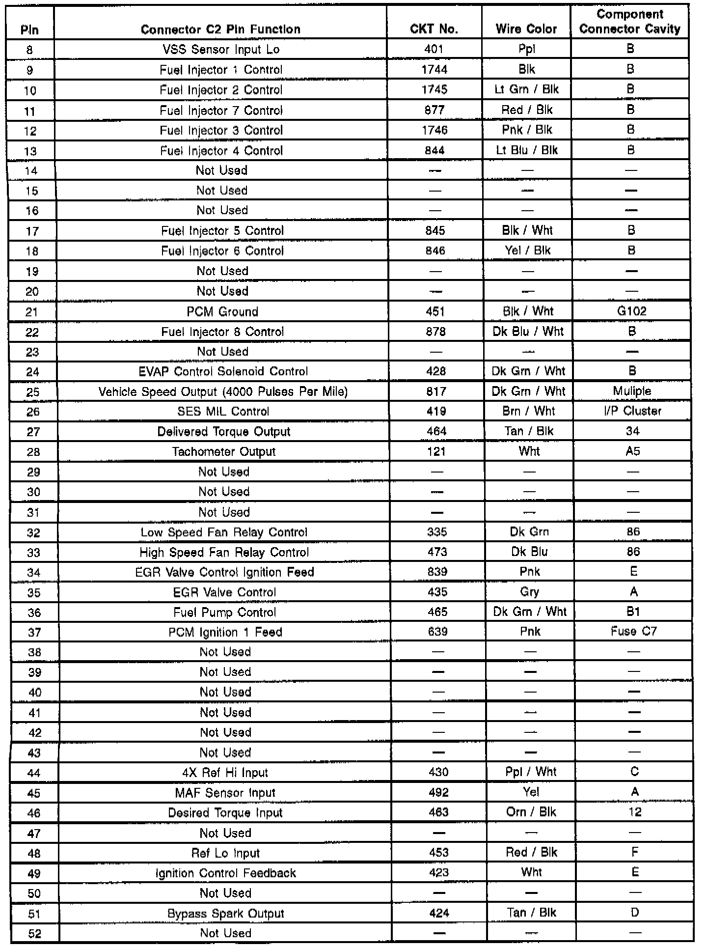 PCM Connector C2 Pin Functions - Part 1 Of 3: