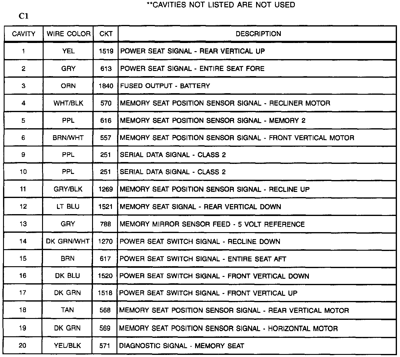 Memory Seat Module C1 (AG7) (Part 2 Of 2):