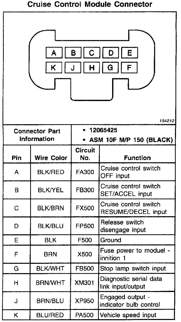 Cruise Control Module Connector: